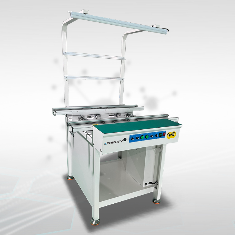 Smooth and parallel width adjustment.(lead screw)  SMEMA compatible.